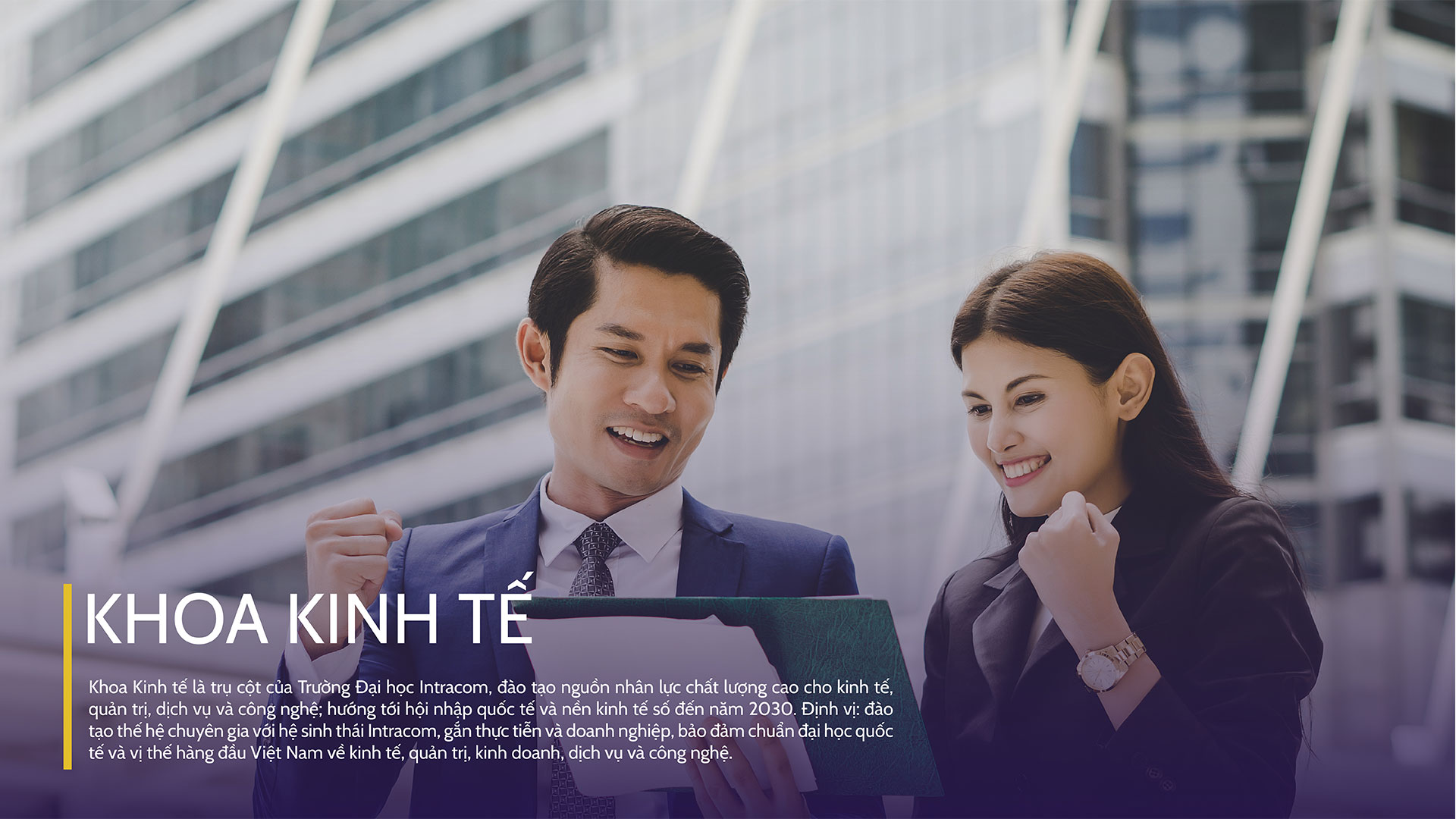 Khoa hoạt động theo triết lý: Đào tạo gắn với thực tiễn – Học tập gắn với doanh nghiệp – Kiến tạo nguồn nhân lực cho tương lai. Nhờ đó, chương trình đào tạo không chỉ dựa trên kiến thức nền tảng mà còn tăng cường kỹ năng thực hành, kỹ năng công nghệ, khả năng thích ứng với thị trường lao động toàn cầu. Trong bối cảnh kinh tế số, chuyển đổi số trong doanh nghiệp và xã hội phát triển mạnh mẽ, khối ngành kinh tế tiếp tục giữ vai trò quan trọng trong nền kinh tế. Khoa Kinh tế của Trường Đại học Intracom định vị mình là đơn vị đào tạo năng động, hiện đại và cập nhật các xu hướng nghề nghiệp mới nhất của thế giới.